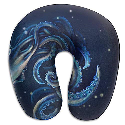 NAN TIAO Cómoda Almohada para el Coche del Tren del avión de Espuma de Memoria, Almohadilla Lavable y cómoda para la Cabeza del Cuello, píldora de Viaje Ocean Octopus
