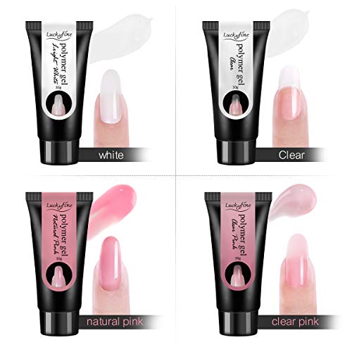 Luckyfine Polygel Uñas Kit, Extensión de Uñas Kit, Esmaltes de Gel Uñas Semipermanente, 4 x Polygel para Pintauñas, 1 x Top Coat, 1 x Base Coat, 100 x Tips, 1 x Limpiador de Uñas, 1 x Pincel