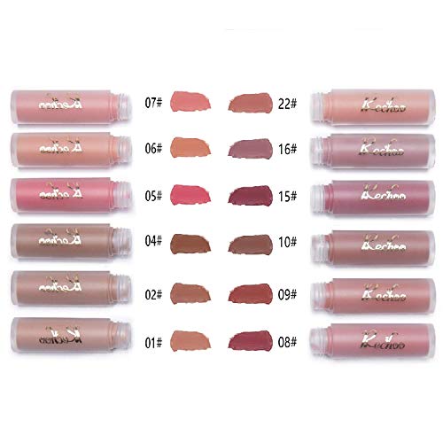 - ❥12 tonos suaves de lápiz labial líquido, coloración altamente pigmentada que proporciona una superficie mate de terciopelo.