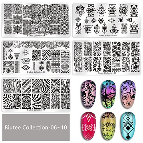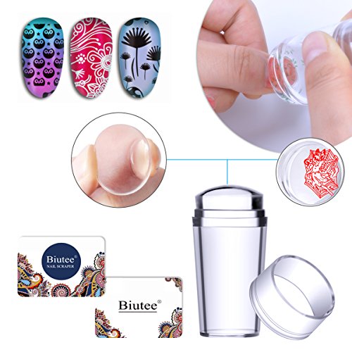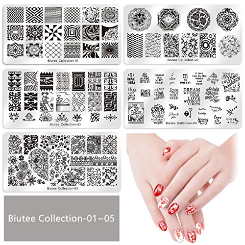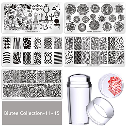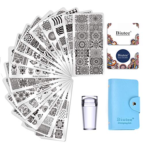 Biutee Nail Art Stamping 15pcs Placas Estampacion Uñas para Manicura +1pcs Sello de Silicona +2 pcs Rascador +1 pcs Bolsa para Placas(Color al azar)