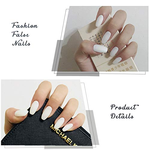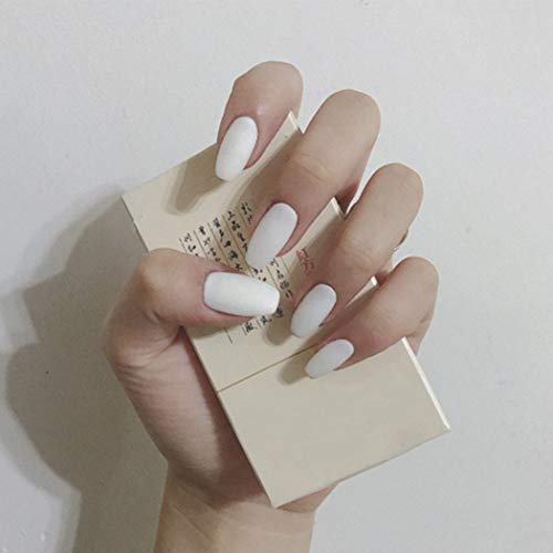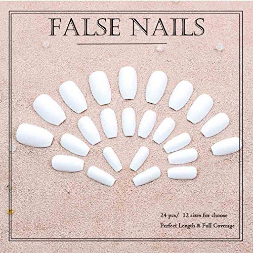 Forall Uñas Postizas De Ataúd De Color Puro Mate Blanco Prensa En Bailarina Uñas Postizas Kit De Uñas Postizas Medianas De Cubierta Completa Para Mujeres y Niñas 24 PCs