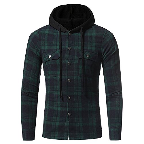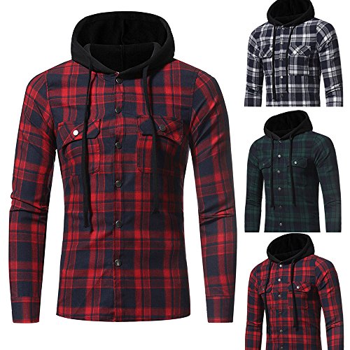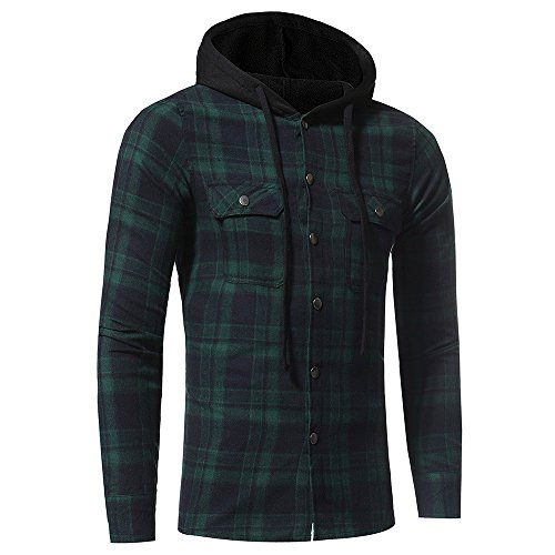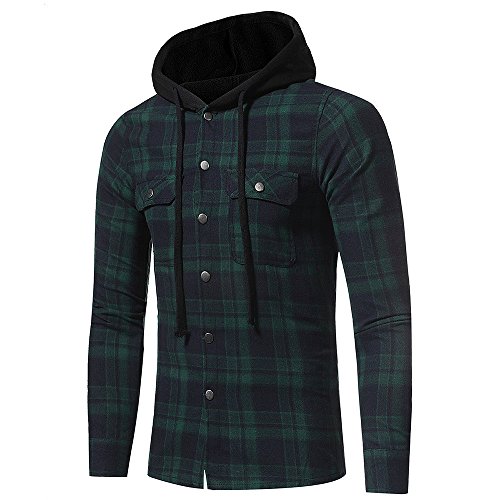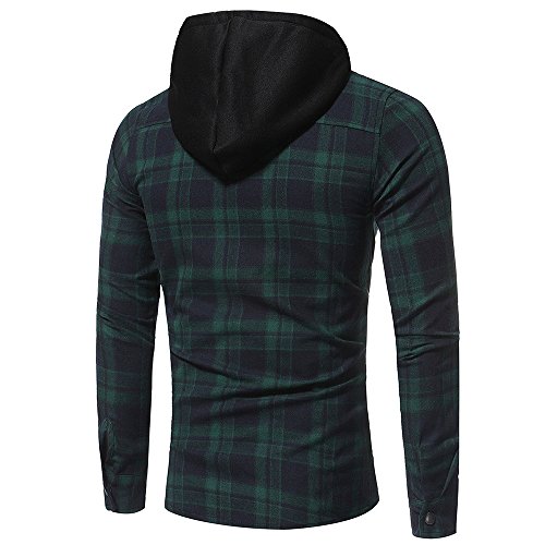 riou Botón Camisa de Manga Larga con Capucha y Cuadros de Otoño Invierno Casual Chaqueta Ropa Tops