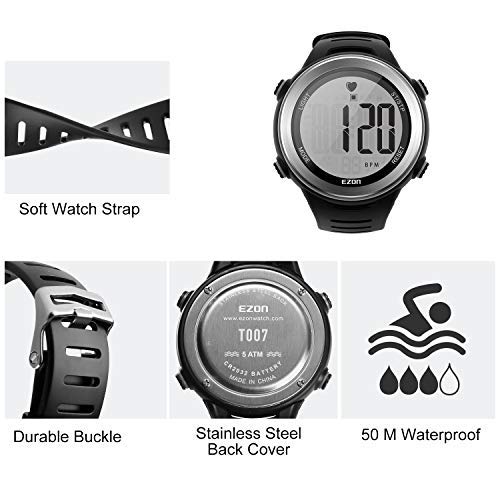 Reloj Digital Deportivo con cronómetro de Alarma de Monitor de frecuencia cardíaca para Correr al Aire Libre EZON (T007-FBA)