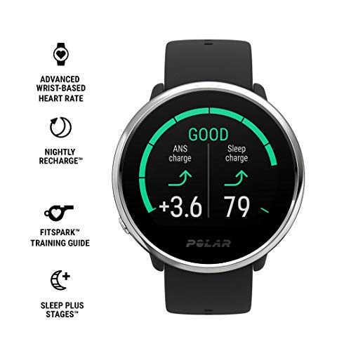 Polar Ignite – Reloj de fitness con GPS integrado, pulsómetro de muñeca, guías de entrenamiento - hombre/mujer - negro/plata M/L