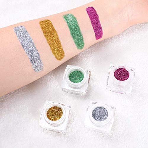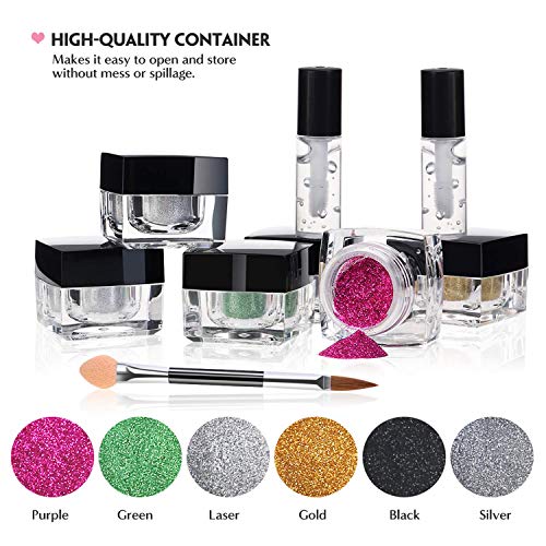RUIMIO Polvo de purpurina de 6 colores con gel de fijación de purpurina y pincel de sombra de ojos, maquillaje, decoración de uñas