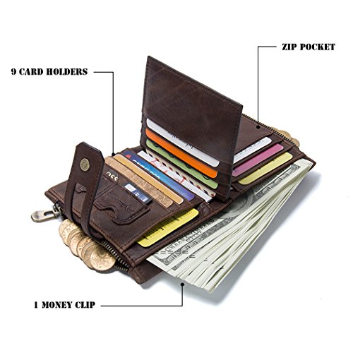 - SECURE ZIP BIFOLD: Compartimentos antideslizamiento únicos para monedas / llaves y cierre de Botton con pestillo para apertura de acceso rápido