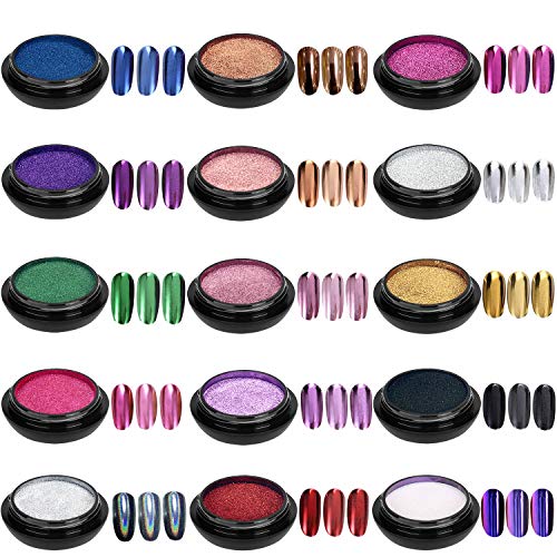 - 【15 colores incluyen】: negro, perla, azul, marrón, granate, carmín, rojo, rosa rojo, plata, oro rosa, lavanda, oro, púrpura, verde y camaleón en polvo están disponibles, puede crear manicuras hermosas y coloridas en su demanda