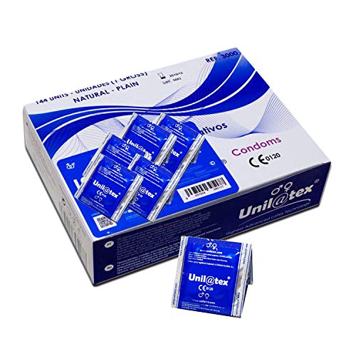 - Preservativos naturales transparentes Unilatex 144 unidades para aquellas personas que valoran mucho la seguridad y resistencia que ofrece un condón.