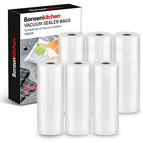 Bonsenkitchen Rollos al Vacio para Envasadora al Vacío, 6 Rollos 20 x 300cm Bolsas de Vacio Gofradas para Conservación de Alimentos y Sous Vide Cocina & Boilable,sin BPA - VB8006