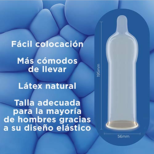 - 40 preservativos de anchura nominal: 56 mm, talla adecuada para la mayoría de los hombres gracias a su diseño elástico