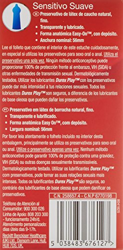 - SENSITIVO SUAVE: Los preservativos Sensitivos de Durex son transparentes y de látex de caucho natural