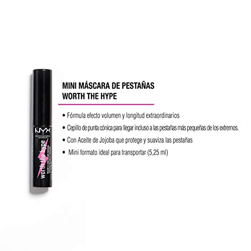 - Mini máscara de pestañas worth the hype mascara con cepillo de punta cónica para dar volumen y longitud a tus pestañas
