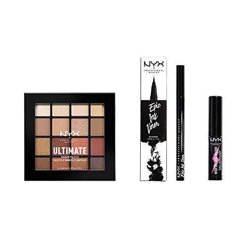 - Contenido: 1 x nyx professional makeup kit de maquillaje de ojos, incluye 1 ultimate eyeshadow palette (warm neutrals), 1 epic ink liner (negro), 1 mini máscara de pestañas worth the hype mascara
