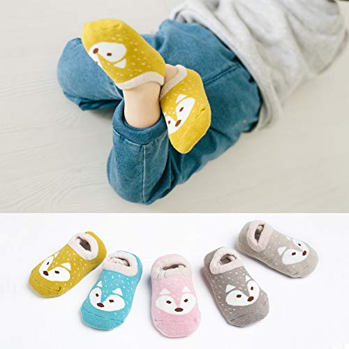 Estwell 5 Pares Calcetines Antideslizantes para Bebé Niños Infantil Niños Niñas Algodón Calentar Lindo Zorro Calcetines