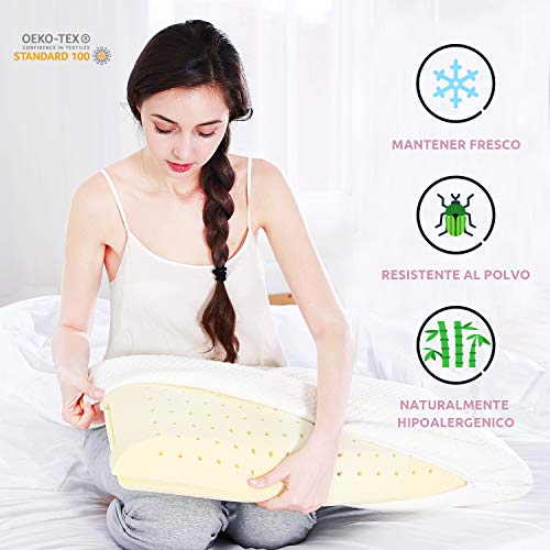 - 【CUBIERTA DE BAMBÚ】 - Funda de 60% poliéster y 40% de bambú, muy transpirable para la circulación del aire, ALMOHADA REFRESCANTE para un sueño fresco. Totalmente extraíble y LAVABLE EN LA LAVADORA para facilitar el lavado.