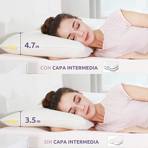 UTTU Almohada de espuma viscoelástica, almohada cervical con altura ajustable, almohada con funda de bambú removible y lavable, almohadas para dormir para los lados y la espalda