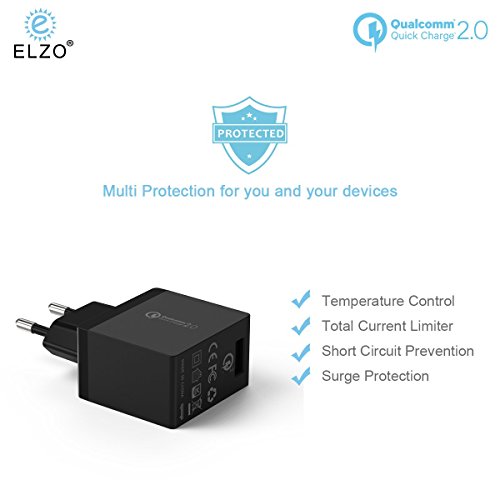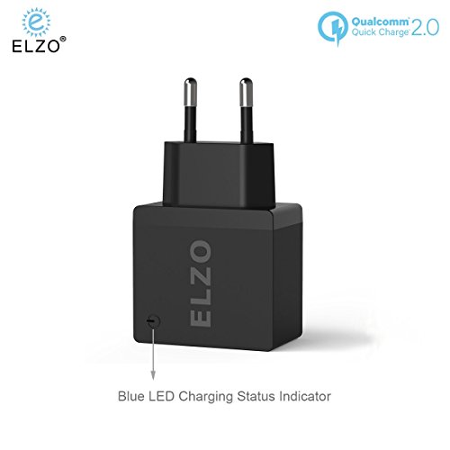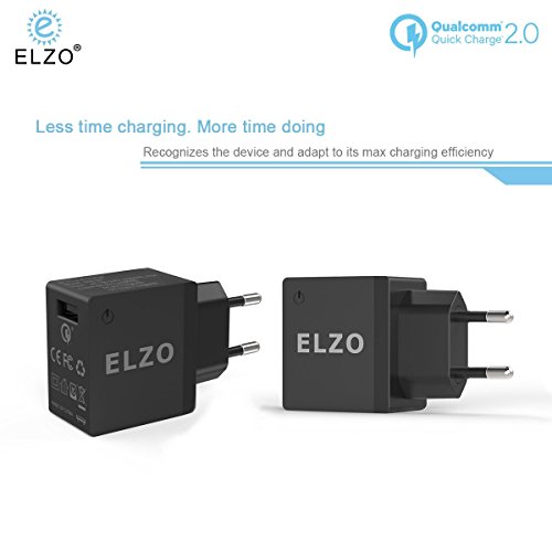 - Elzo QC 2.0 cargador rápido cuenta con la certificación de Qualcomm Quick Charge, y le propone una nueva carga de un 75% más rápida que la convencional, reduciendo a la mitad el tiempo de recarga de su terminal.