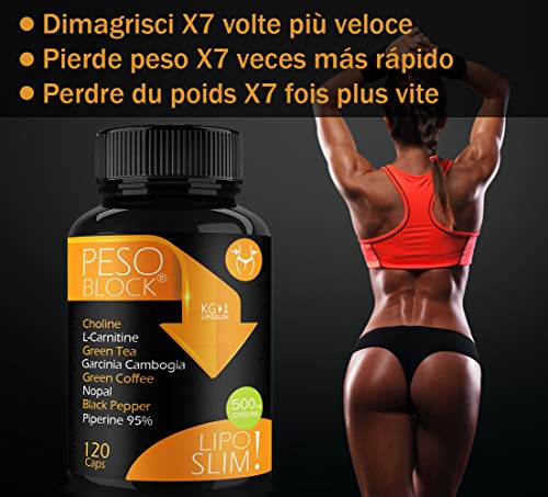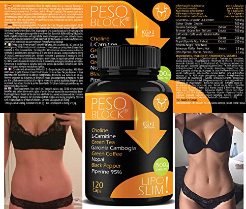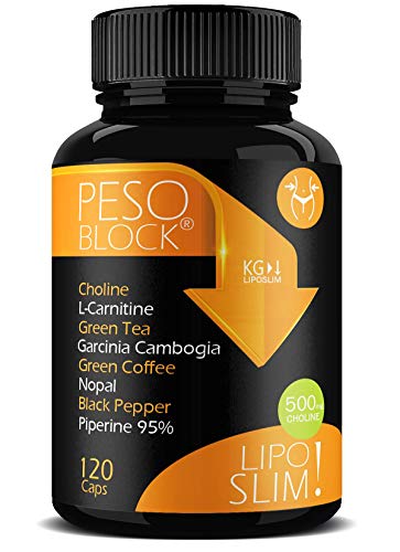 - ✅ ADELGAZAR - PERDER PESO - TONIFICAR – Peso Block es un quemagrasas potente para adelgazar a base de Garcinia cambogia, L-Carnitina, Choline, Té verde + Opuntia Ficus, Café verde y Piperina, componentes meticulosamente seleccionados para poder ofrecerte efectos termogénicos, quemagrasas, reductores del apetito y estimulantes del metabolismo.