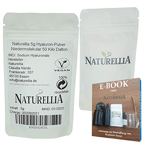 Naturellia Acido Hialuronico Polvo 5 Gramos 50 k-Dalton Altamente Concentrado - Bajo Peso Molecular Para el Efecto de Superficie - Solo Mezclar una Crema Antienvejecimiento en el Hogar