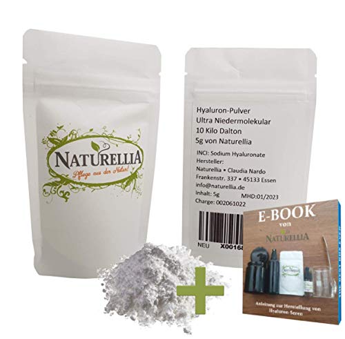 Naturellia Acido Hialuronico Polvo ULTRA 5Gramos 10k Dalton Altamente Concentrado - Ultra Bajo Peso Molecular Para el Efecto de Profundidad - Solo Mezclar una Crema Antienvejecimiento en el Hogar DIY