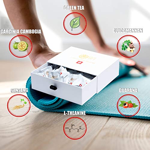 - ✅ SUPRIME EL APETITO Y AUMENTA LA ENERGÍA - Garcinia Cambogia reduce el almacenamiento de grasas y suprime el apetito mientras que la raíz de glucomanano apoya la pérdida de peso. El extracto de té verde aumenta el metabolismo y ayuda a alcanzar el peso normal. El ginseng y el guaraná aumentan y estimulan los niveles de energía. L-teanina apoya la concentración y alivia el estrés y la ansiedad. Le ofrecemos un potente quemador de grasa que respalda su rendimiento físico y su pérdida de grasa.