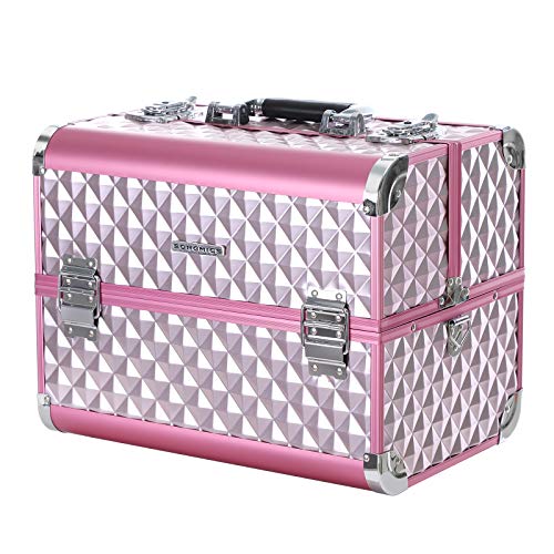 SONGMICS Maletín para Maquillaje de Uso Profesional, Caja de Belleza con 4 Bandejas Extensibles, Uso de Viaje, 36,5 x 24 x 24 cm JBC319P