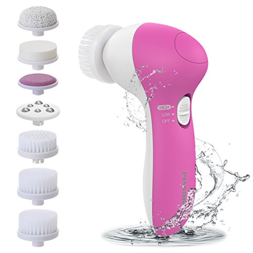 PIXNOR [Actualizada] 7 En 1 Cepillo Limpiador Facial Electrico, Limpiador de Cara Giratoria Impermeable Cepillo de Limpieza Masajeadorlos para Remover Lípidos Adicionales, Puntos Negros y Maquillaje
