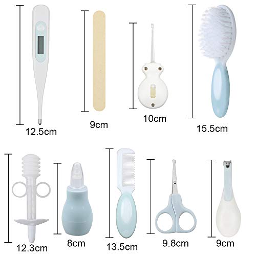 Lictin Set para Cuidado del Bebé - 15 Piezas Kit de Aseo para Bebés con Cuchara de Oreja con LED Cepillo de Pelo y Peine,Cortador de Uñas Cepillo de Dientes de Dedo para Viaje y el Uso Diario (Azul)