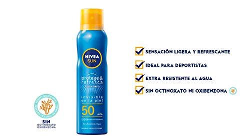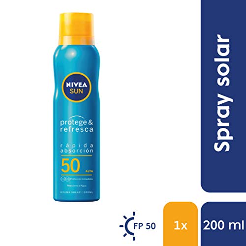 NIVEA SUN Protege & Refresca Spray Bruma Solar FP50 (1 x 200 ml), protector solar en spray transparente, bruma refrescante y resistente al agua