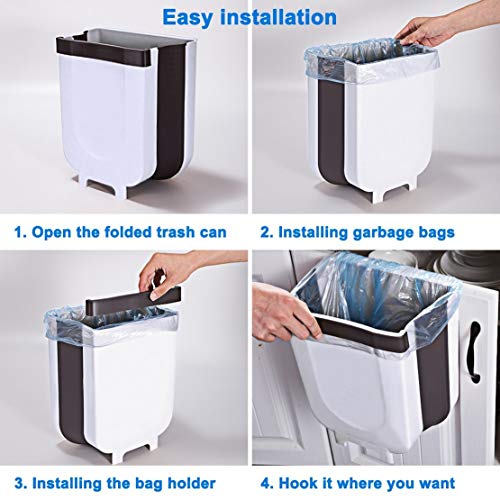 TTMOW Cubos de Basura Plegable Colgando para la Cocina, Coche 9L (Blanco)