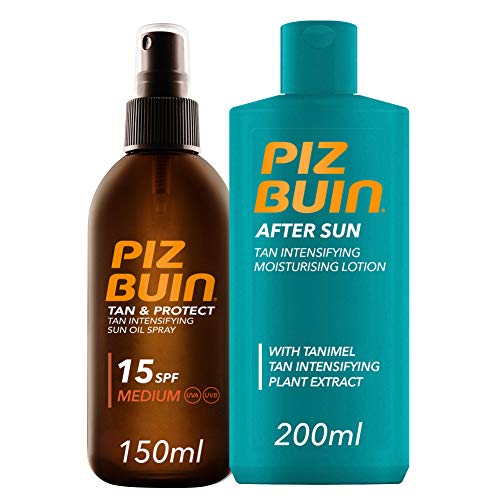 Piz Buin, Tan & Protect Aceite en Spray Acelerador del Bronceado, SPF15, Protección Media,150ml + After Sun Loción Intensificadora del bronceado,200ml