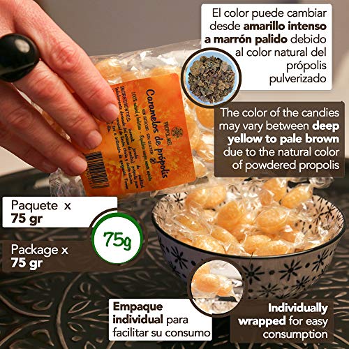 - ?? PRODUCTO ARTESANAL ELABORADO EN ESPAÑA ?? El color de los caramelos pueden cambiar desde amarillo intenso a marron palido debido al color natural del propoleo, que varía según la zona de recolección y la temporada
