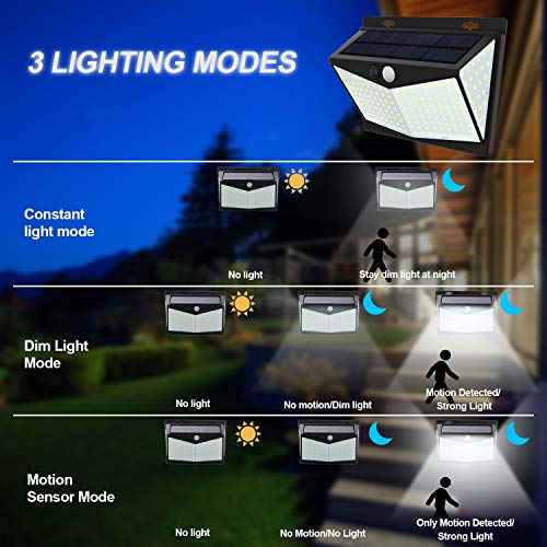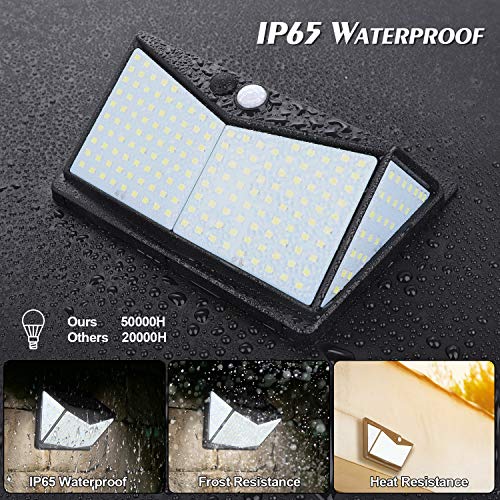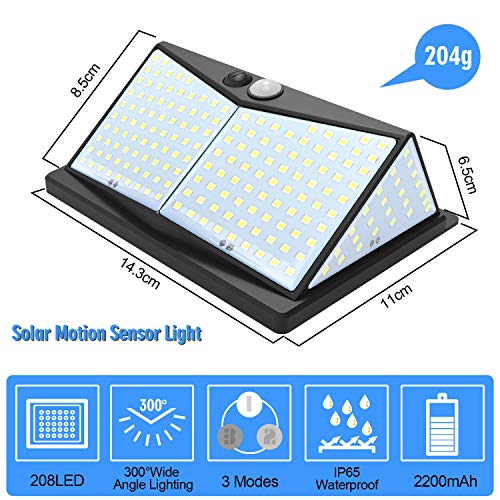 - 【Luz solar exterior con 2 Pack】Viene con 208LED y una batería de 2200mAh,Ángulo de iluminación de 270°,en comparación con otras lámparas solares para exteriores, esta lámpara solar proporciona un área de iluminación más brillantey amplia.