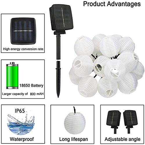 - ✔【Clasificación IP65 a prueba de agua】¡Estas linternas decorativas para exteriores están hechas de lona, material 100% impermeable como tela! La clasificación de impermeabilidad del panel solar alcanza IP65, que es muy adecuada para la instalación en su jardín, es la decoración perfecta para fiestas y celebraciones al aire libre.