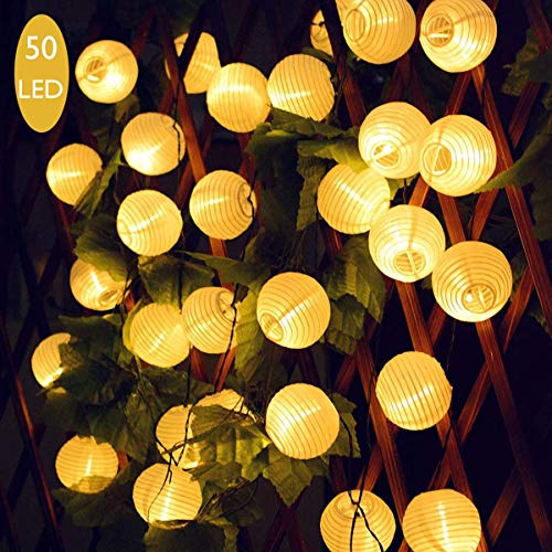 Cadena de Luces Solar Exterior, VIFLYKOO Cadena de linterna LED solar al aire libre 50LEDs 8 patrones 9.2M IP65 Impermeable Decoración para jardín, patio, balcón, boda, fiesta-Blanco cálido