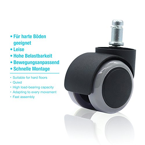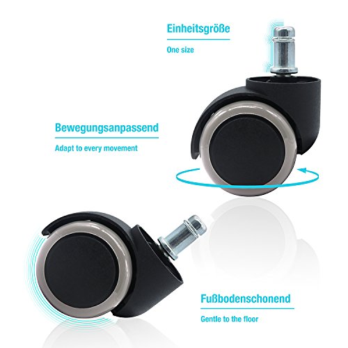 ✯✯ ADAPTABLE AL MOVIMIENTO ✯✯ Las ruedas castor cambian su dirección solas y se adaptan al movimiento. Son especialmente aptas para suelos duros. Las ruedas de oficina de WILLSTOM de plástico de alta calidad garantizan un rodado ligero de su silla sobre el suelo.
