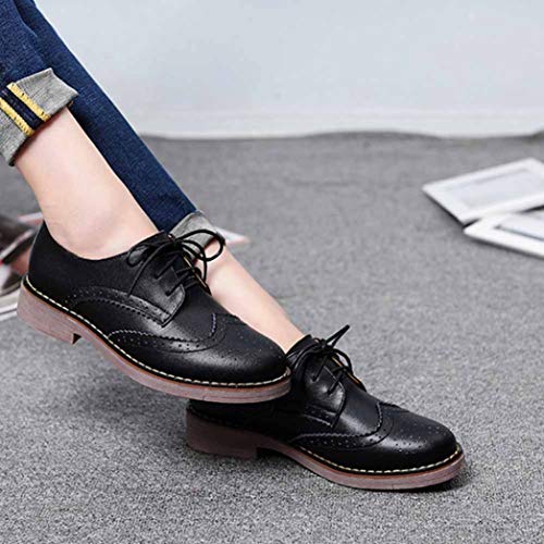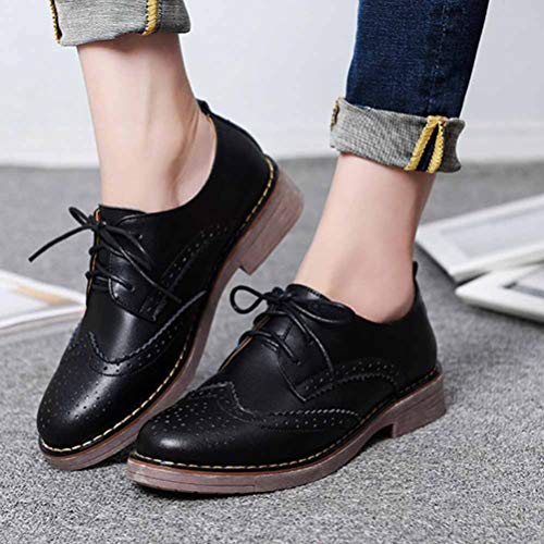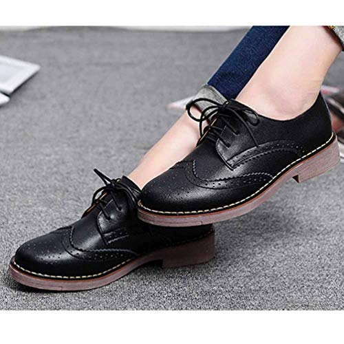 Mujeres Chica Casual Vintage Encaje-up Comodidad Grueso talón Perforado Punta de ala Brogues Oxford Trabajo de Oficina de Trabajo de la Escuela Zapatos de Vestir