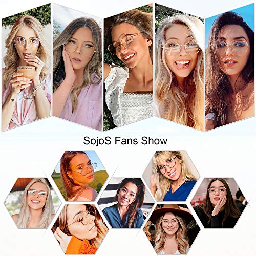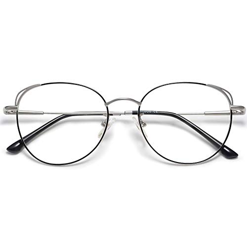 SOJOS Gafas de Filtro de Luz Azul para Computador Lentes Antireflejantes para Mujer Ojo de Gato Marco de metal SJ5027 She Young Con Marco Plateado&Negro