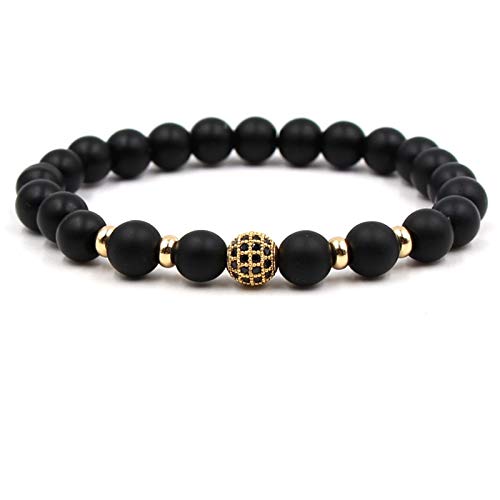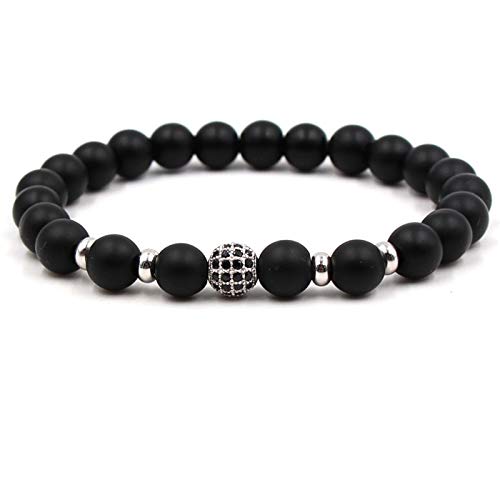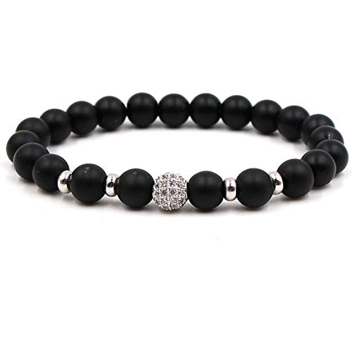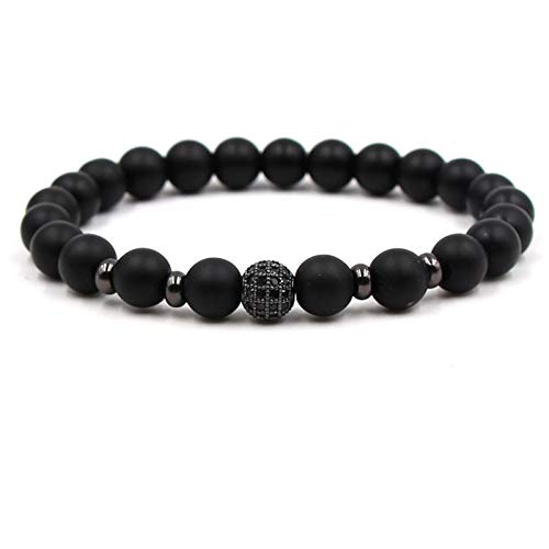 QFJCNZ Pulsera 2018 Charm Men Bracelet 8Mm Black Natural Stone Set Ball Black and White Zircon Bead Bracelets para Hombres Mujeres