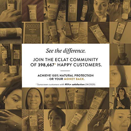 - GARANTÍA ECLAT DE DEVOLUCIÓN DEL 100% DEL DINERO: Sí, así es. Nuestra protección solar mineral orgánica clínicamente probada proporciona una poderosa protección completa de los rayos UVA y UVB al mismo tiempo que hidrata, nutre y refresca la piel con una mezcla exclusiva de minerales y antioxidantes naturales. Por favor, pide el reembolso completo si no quedas 100% satisfecho – sin hacer preguntas.