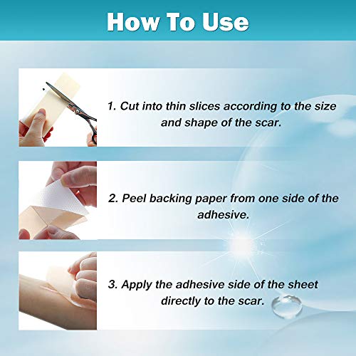 - ✔ Fácil de usar: limpie y seque el área de la cicatriz. Luego, corte la sábana de acuerdo con el tamaño y la forma de la cicatriz, retire el forro. Y luego aplique la superficie adhesiva a la cicatriz. Es muy fácil de usar!