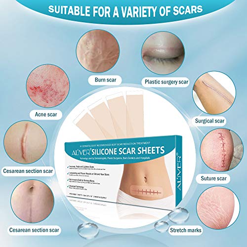 - ✔ Material innovador de membrana de silicio: nuestras láminas de silicona para cicatrices se desarrollan profesionalmente para mejorar la apariencia del tejido cicatricial, como quemaduras, acné, etc., y suavizar las cicatrices. (5.9 "× 1.6", 4 piezas reutilizables)