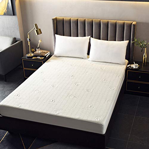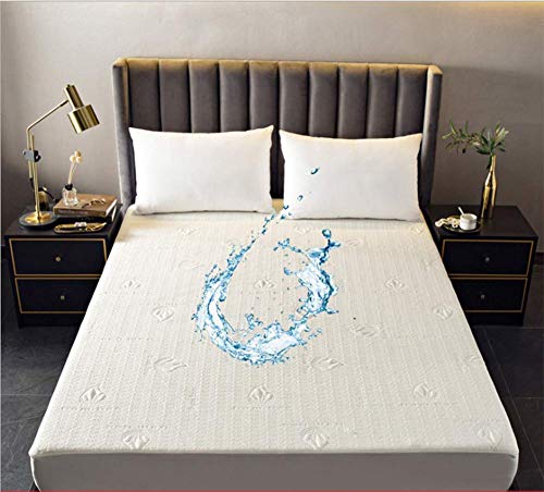 LRQY Acolchada Bambú Protector De Colchón 100% Impermeable Cama Matrimonial, Transpirable Anti Alergico Funda De Colchón,White1,180 * 200cm