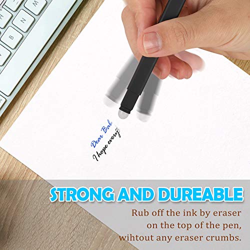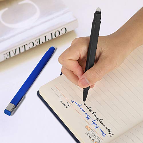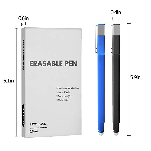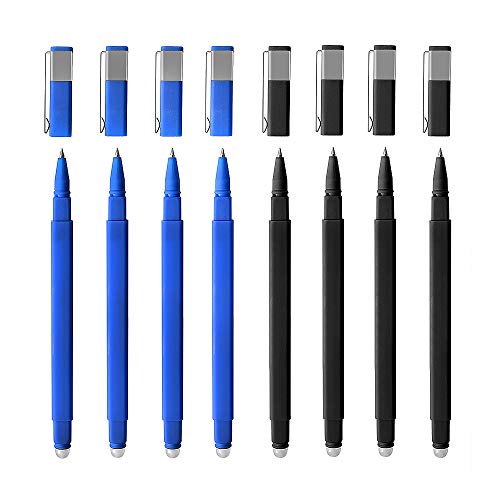 - ♥ Escritura suave: tinta de gel borrable, punta: 0,5 mm, 4 bolígrafos negros, 4 bolígrafos azules. Tinta no tóxica, libre de ácidos, no se decolora, borrable con calor. El borrador está en la parte superior de la punta del bolígrafo, retráctil presionando el clip hacia abajo. Estos bolígrafos escriben como bolígrafos de gel y borran como lápices.