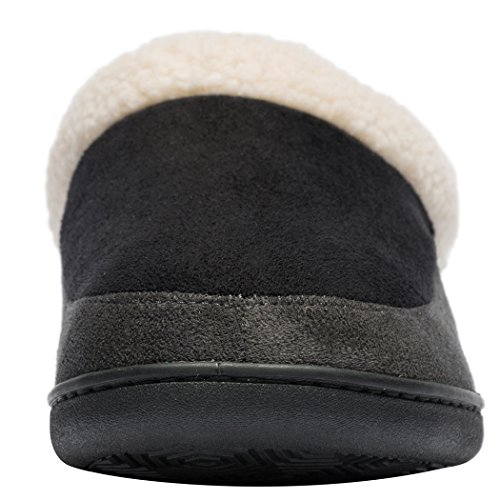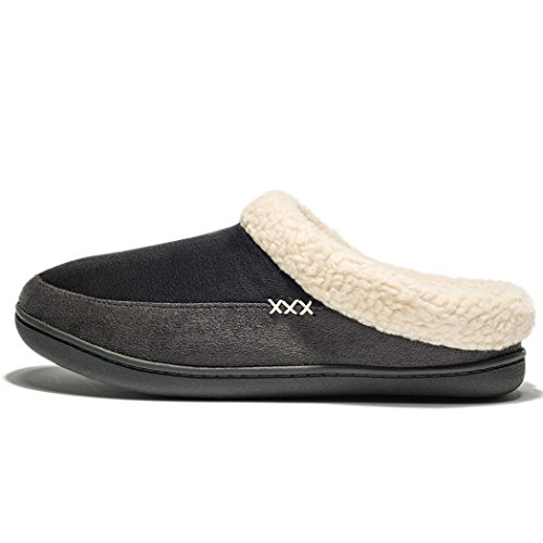 NewDenBer Mujer Zapatillas de Suede casa Espuma de Memoria de Cálido Interior Lana al Aire Libre Forro de Felpa Suela Antideslizante Zapatos (35/36 EU, 002 Negro Gris (Black Grey))