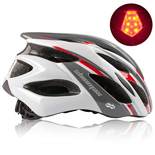 Shinmax Casco Bicicleta con Visera,Certificación CE,Ajustable Casco de Bicicleta Ligera BMX Scooter Skate Mountain Road Hombres Mujeres,Protección de Seguridad Casco Bicicleta con luz Trasera LED