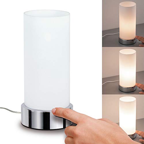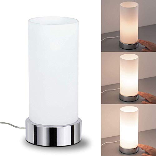 Paulmann 77029 Pinja-Lámpara de Mesa de 3 encendidos táctil E14, 0 W, Cromo, Blanco, 11 x 11 x 24 cm
