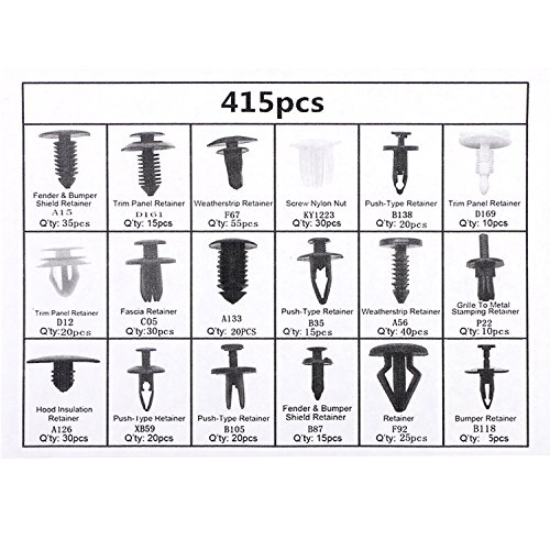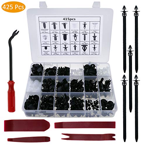 - ¿Qué obtendrá:Su paquete vendrá con clips de remaches de 415 piezas / 18 tamaños, 4 herramientas de eliminación de paneles de plástico, 5 correas duraderas, 1 extractor de sujetadores. Y nuestra garantía de 12 meses sin preocupaciones y un servicio al cliente amigable.