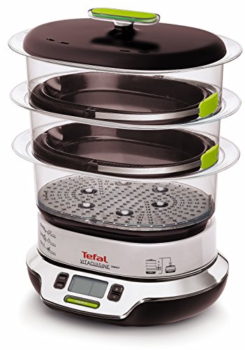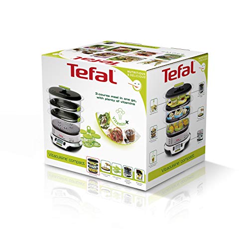 Tefal Vitacuisine Compact VS400333 - Vaporera compacta 1800 W, con 3 pisos para cocciĂłn simultĂĄnea, 2 cestos, capacidad de 9 L, libro de cocina incluĂdo