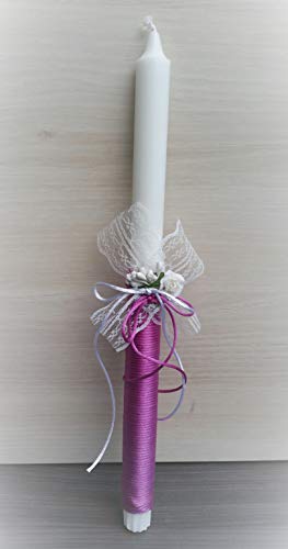 Vela bautizo con cinta morada flores vintage 35/2,2 cm.